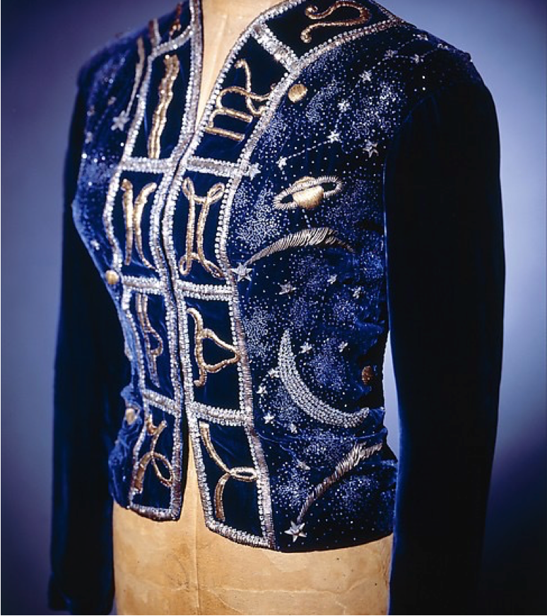 Créer un motif brodé ou imprimé inspiré de ton signe astrologique, à la manière des constellations dorées de Schiaparelli.