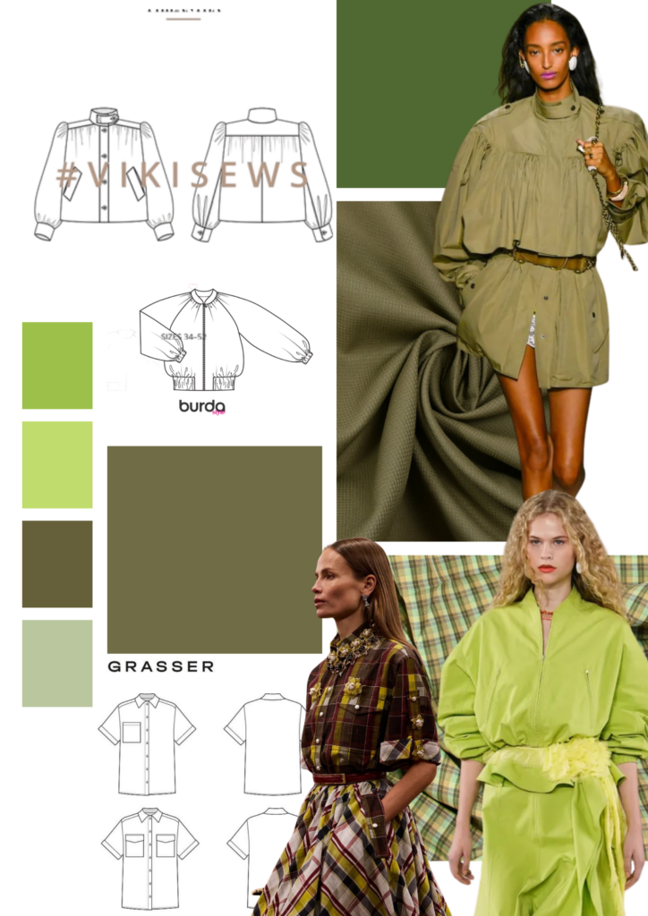 Côté matières, on privilégie des tissus vivants : coton, viscose, lin mélangé. Côté couleurs, des verts nuancés, sauge, olive, émeraude, anis, qui évoluent avec la lumière.
